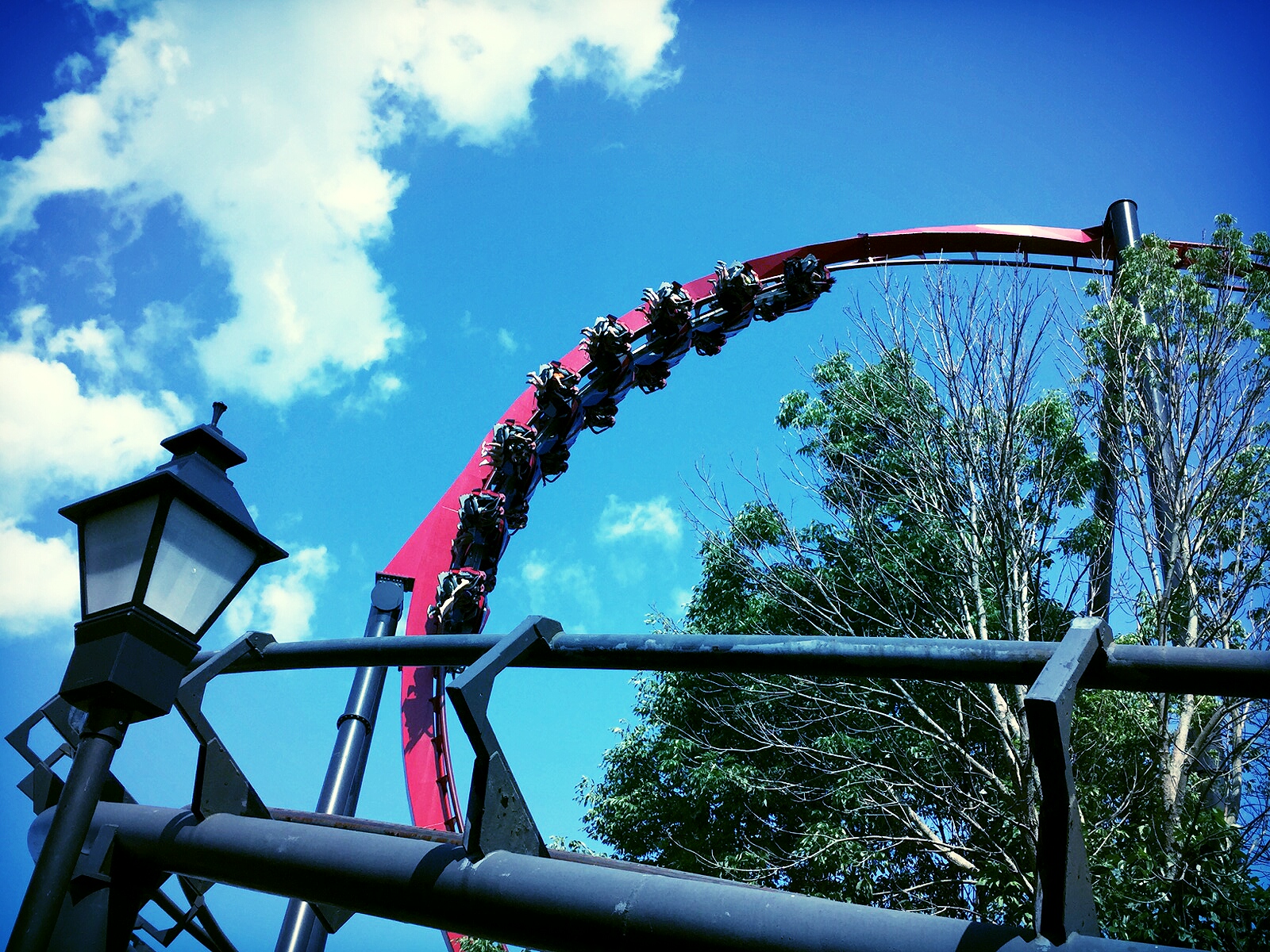 Guests prepare to enjoy a ride on Ricochet. Others, prefer a nice, head-pounding migraine on Demon. (Sorry, I had to