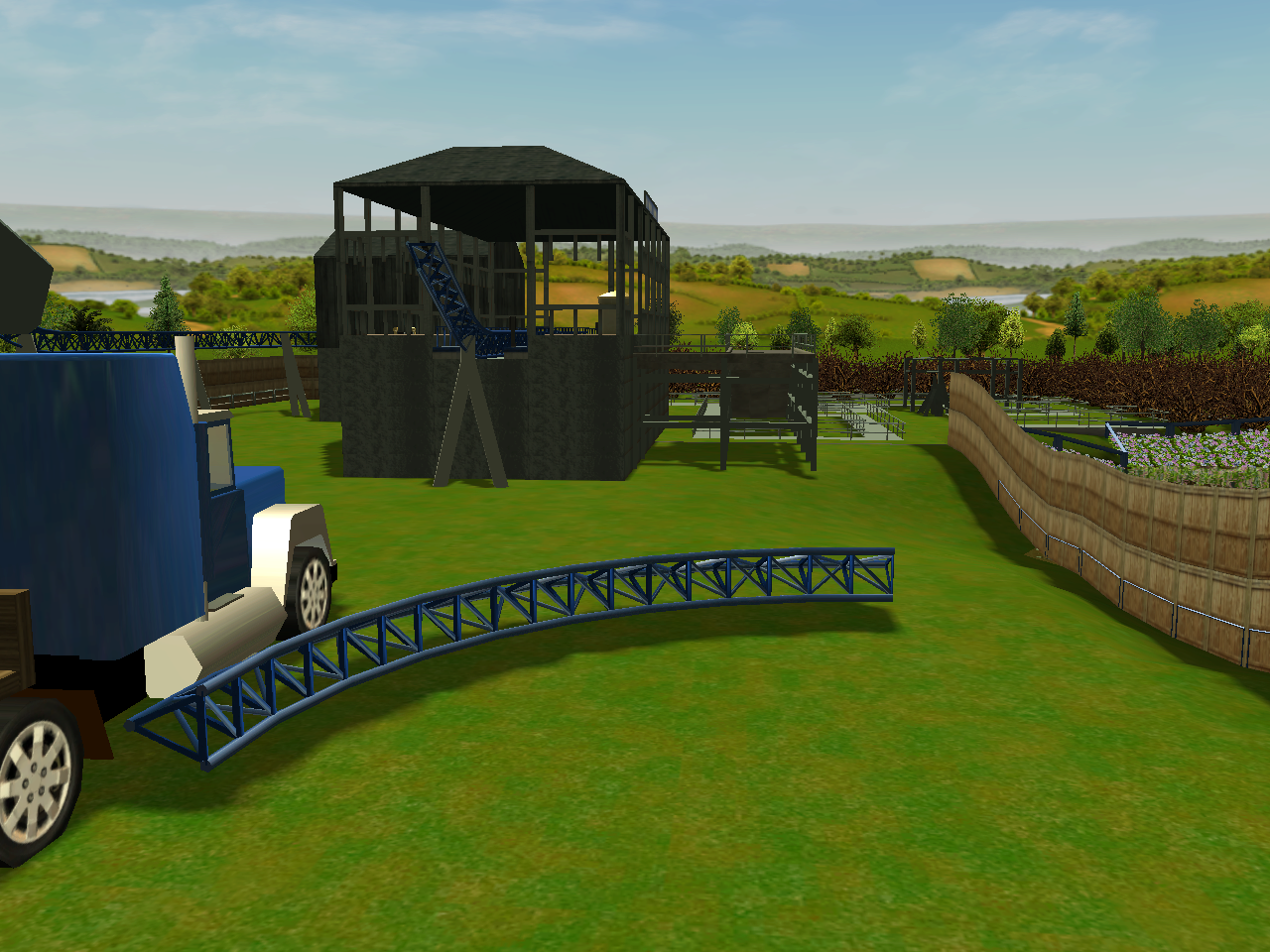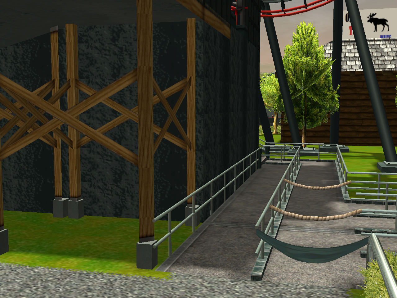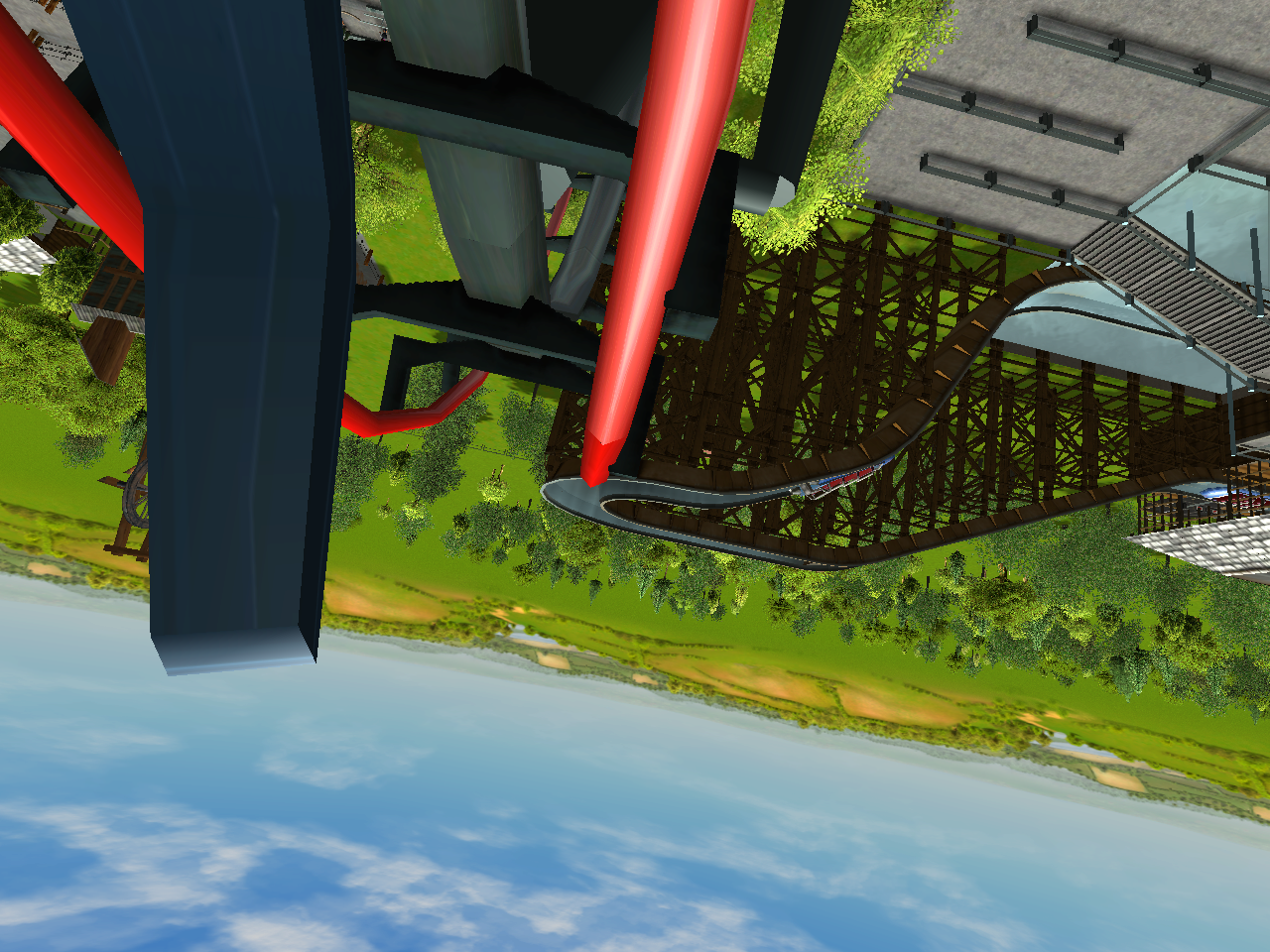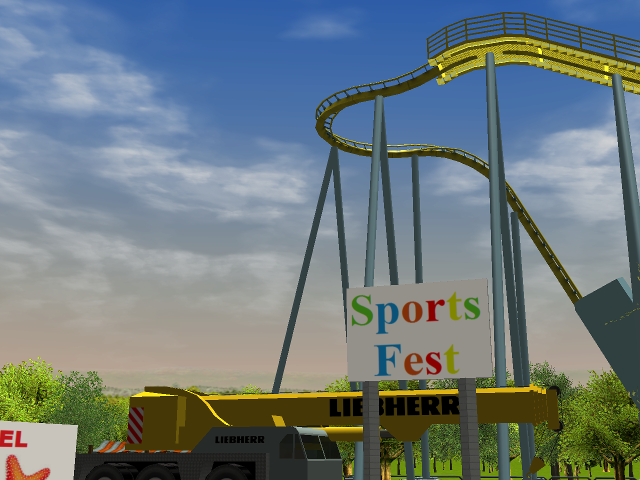 Deconstruction at Calico Lake has began. Here you can see a piece of their new "Total Chaos" roller coaster being hauled away to the Greenwich Scrapyard.