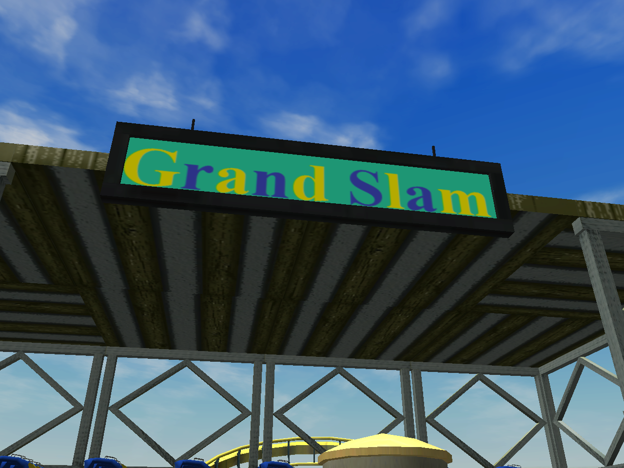 A unique view of Grand Stand's break run. Funny thing, Mr. Heage told me that the ride was originally going to be named "Vortex" and be themed to a time vortex relating to the 1950's, but plans were scrapped due to money constraints. Did you ever wonder why there's a tunnel at the bottom of Grand Stand's drop? It was apparently supposed to cover up the whole drop rotating colors between yellow and light blue to give riders that "Swooosh" feeling.