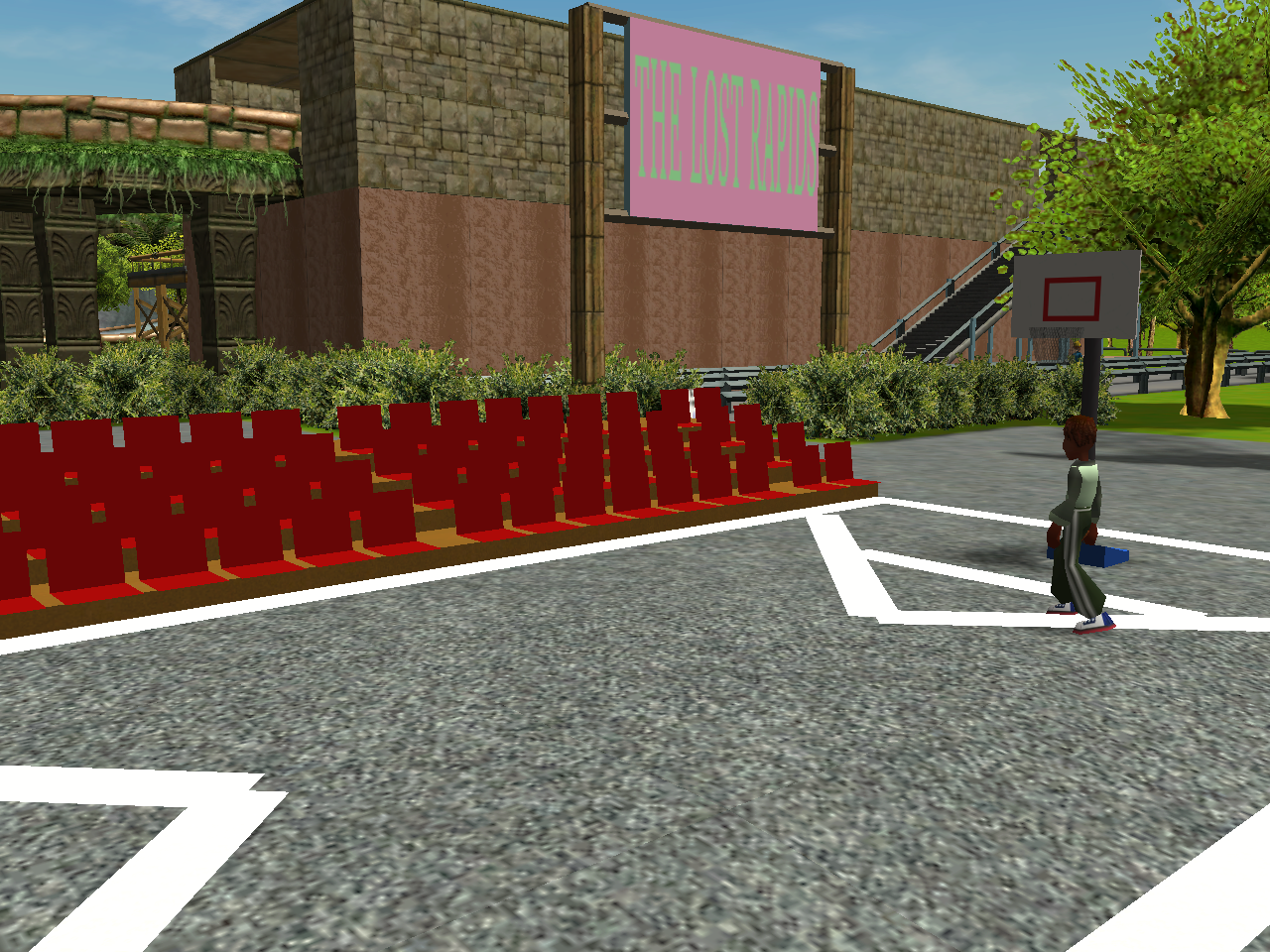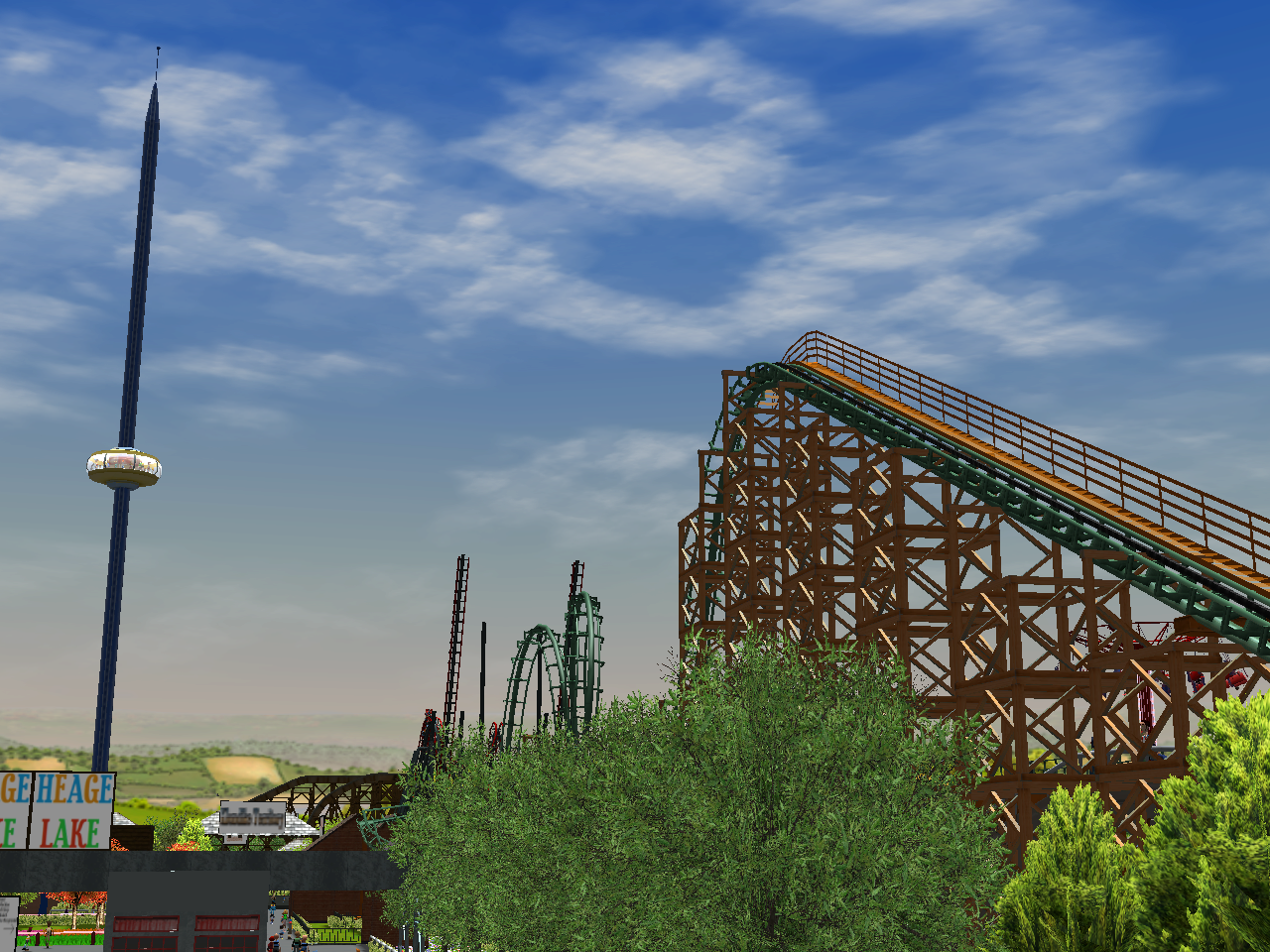 What does Heage Lake have that other parks tend to lack? Hang on man, I forgot. Oh yeah, I mean the way in which our park has put together a lovely looking Spanish area. Find out for yourself and spring into the park's Tajito Village area. I can tell that this is going to be a great 1996, I mean 1995 season.