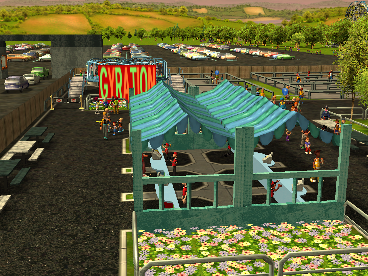 A view of the mid-way from Swingset's queue line