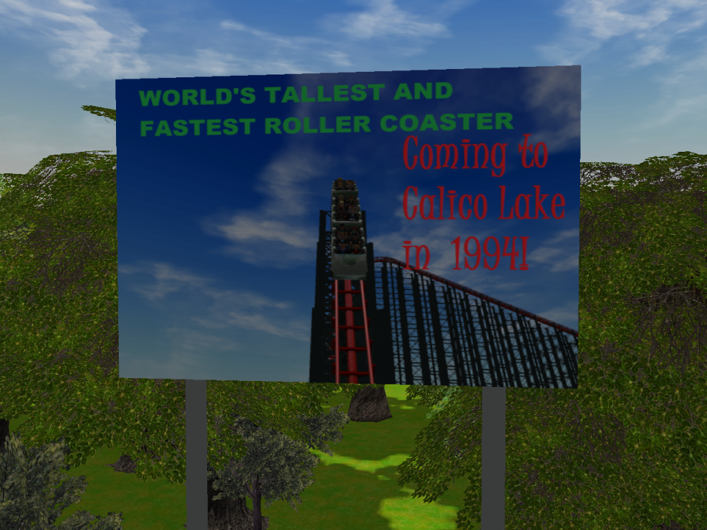 As you can see, Mr. Calico has started putting up advertisements for his own park. The fact that they're right near Heage Lake doesn't help either.