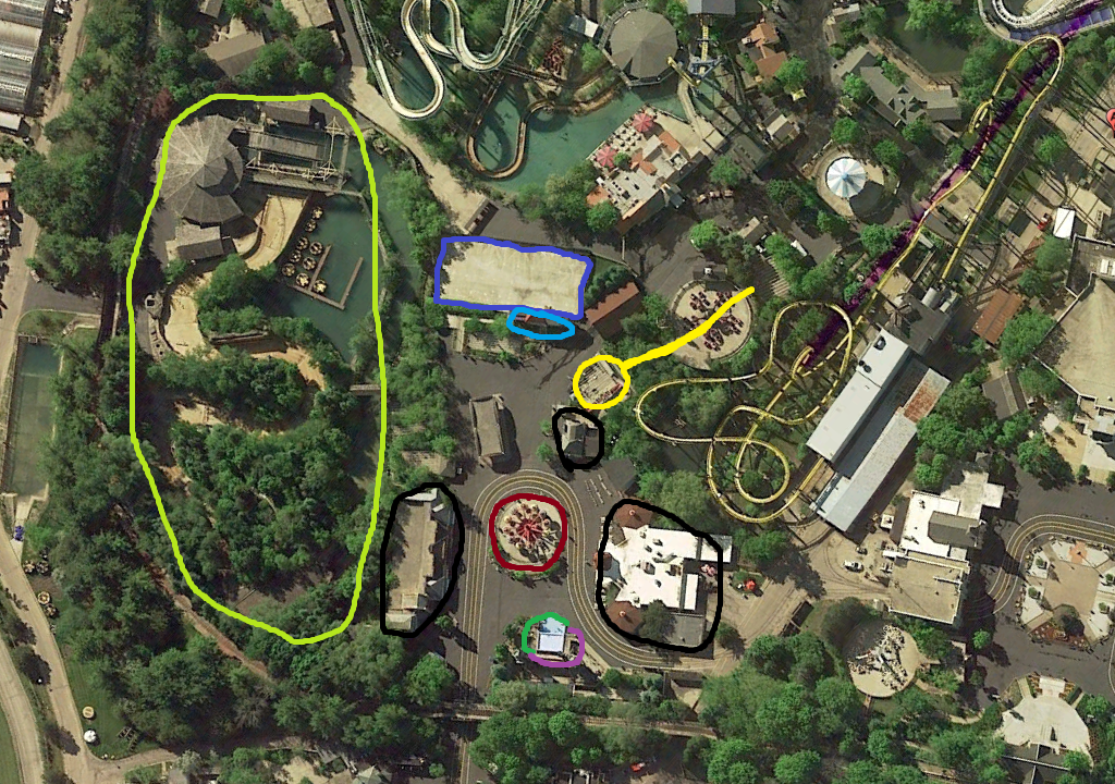 Marron-family based attraction-Dont know what it could be, but something leaning towards the families, maybe east river crawlers themed different and located there, then the entrance path for batman can go where east river crawlers is. And for a theme, Harley quins spinsanity