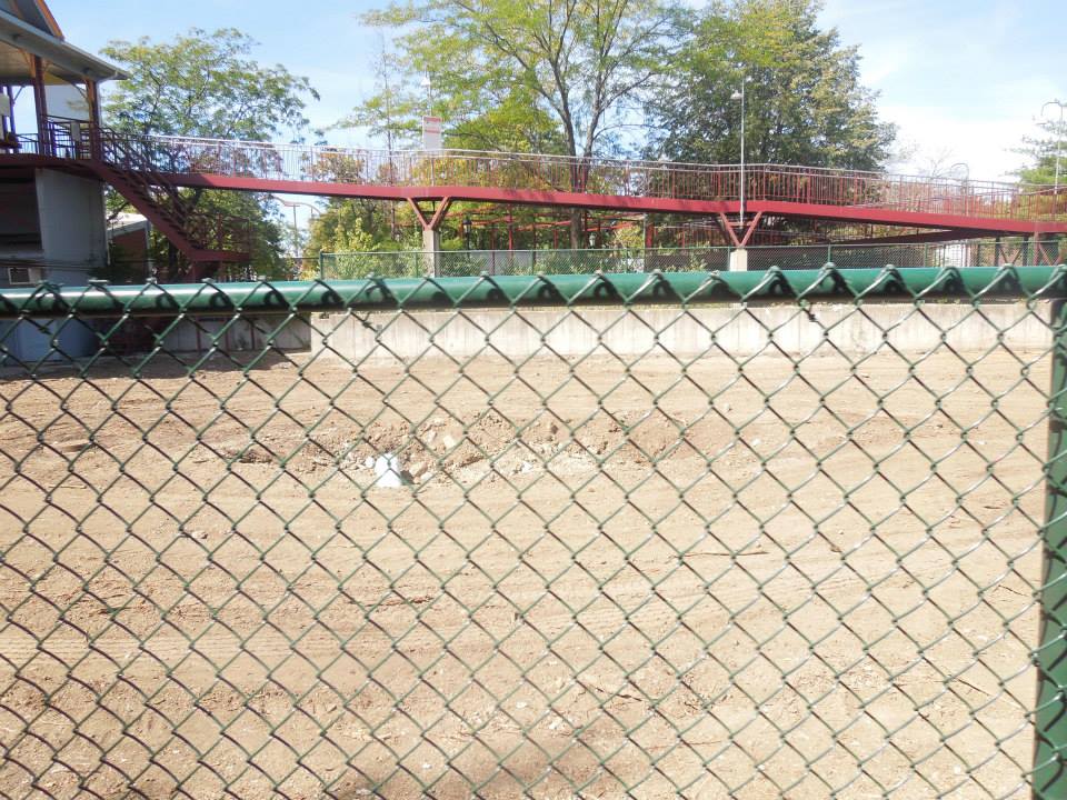 The back section of fencing along the covered walkway has been removed. Also, the uncovered concrete slab in Picnic Grove Area 6 has been torn up