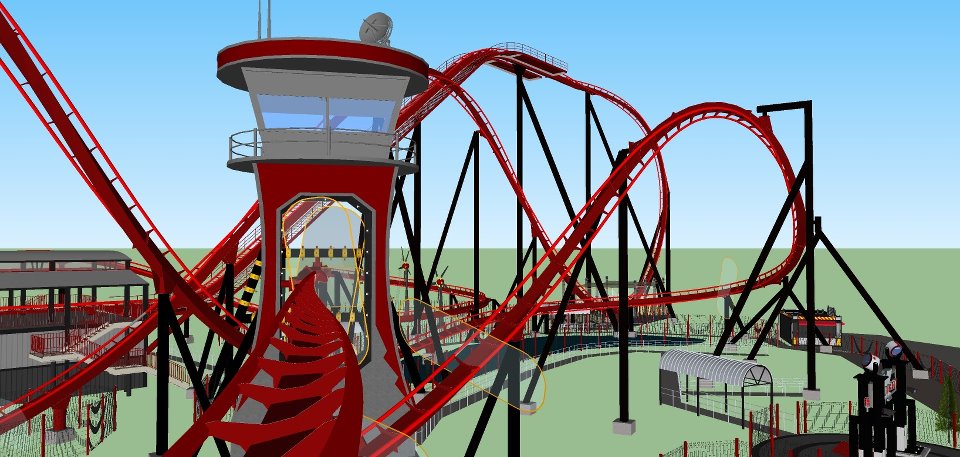 What an amazing thing to come home to after work! ;D Looks so well done. At the beginning of all this(announcement), I didnt expect the "caution support", mist, water jets, modern station/tower vs concept art, or different colored trains.... I mean This is one of these situations where I tell people SFGAm throws in surprises & adds stuff in/they do things differently than most of the other SF parks...its true! I love everything about this ride. I'm not gonna complain about the hangar regardless of me findin it odd that its just a wall because the ride overall looks fantastic!