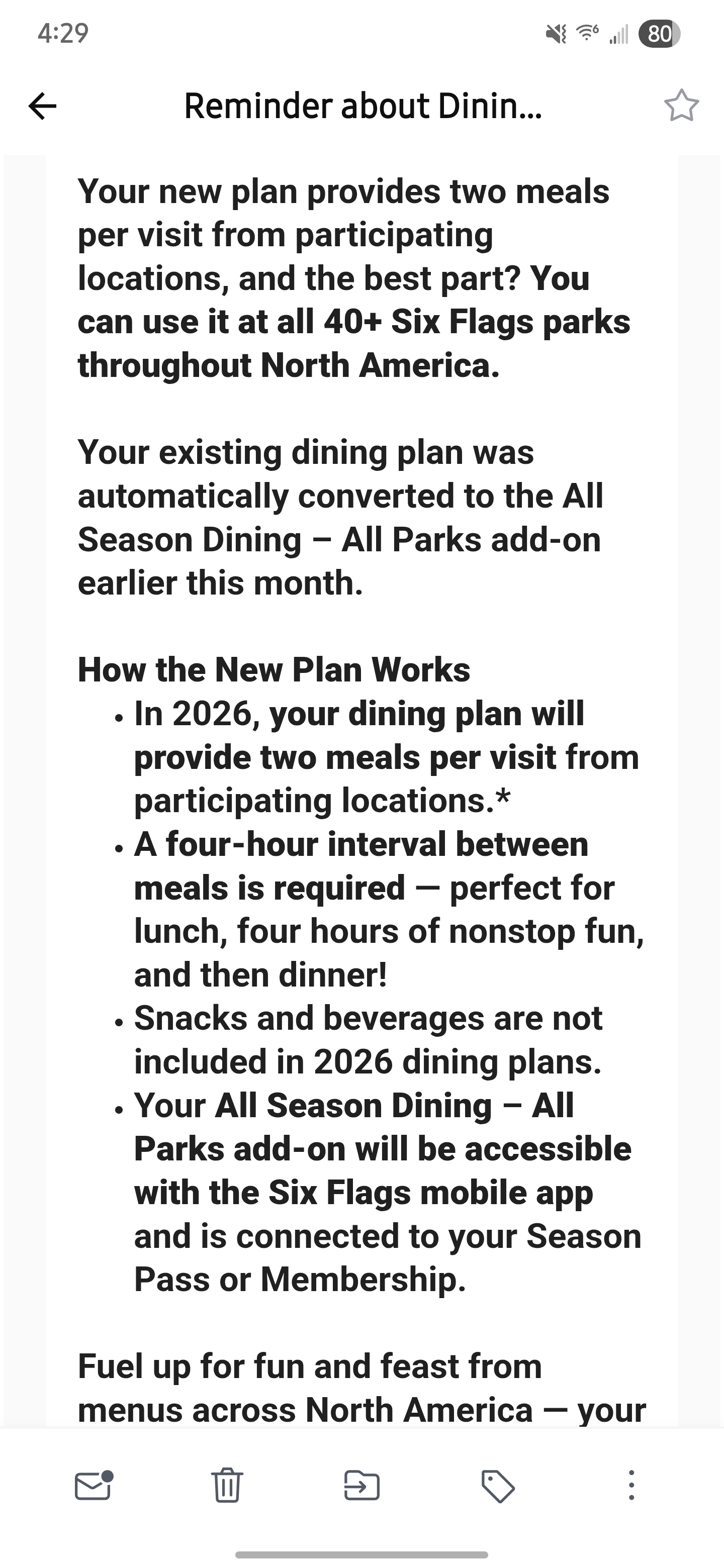 I think the 4 hour interval is excessive. You'd have to skip breakfast, eat shortly after arriving, then again later on days where the park isn't open super late. Opening day is a good example.