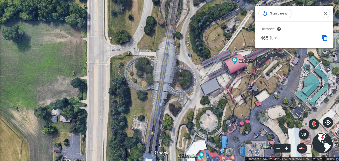 I think some people are forgetting the sheer potential in this roller coaster. Like, this could very possibly be one of the best coasters in the world, if not, the best coaster in the world. Let's take Steel Vengeance for example. AE has a 127ft height with a 147ft drop. Mean Streak had I believe a 161ft height, but a 155ft drop. Drop heights are very similar, along with a similar angled drop. I put it in google earth to see what the distance was from the start of the lift hill and the end of the first drop, and well...