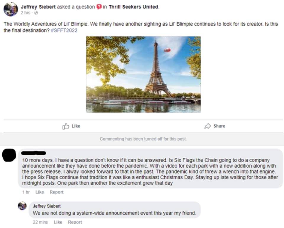 They posted a video the other day responding to social media comments. I watched it closely to see if I could see any hints, but I didn't. It seems like Six Flags might be abandoning the usual 'announce everything right before Labor Day' (SFFT is going way before that) so it opens up the possibility that we could hear something at any point...