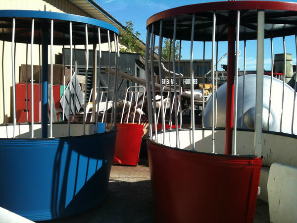 Six Flags Great America tweeted "Look what we found getting a fresh coat of paint! Wonder what they could be using these for #FrightFest?" and the picture of the repainted Sky Whirl Cabins. I remember from previous years that they were painted green. I wonder where and what they will be used for this year since it looks like they got repainted their original colors Does anybody know or have any guesses of where and what they'll be used for.
