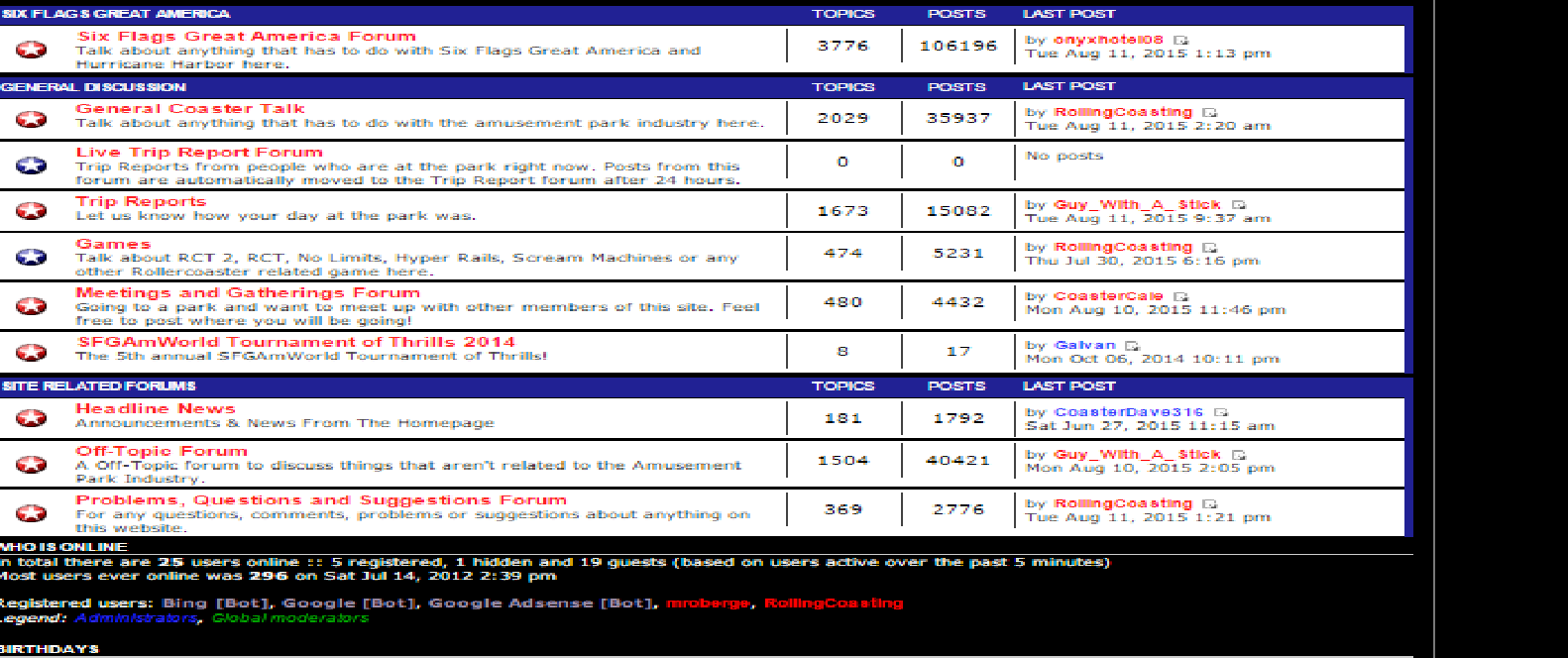 When Great America doesn't add anything major, like the years they added Operation Spygirl, Wiggles World, Buccaneer Battle. Interest level in talking about the park goes down and there is obviously less discussion. With them not really adding anything major in 2015, the interest level is down now.....until the next major attraction, whenever that will be.