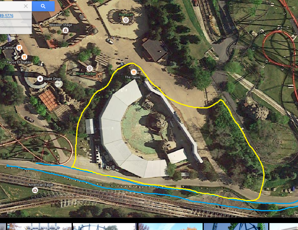 Also -- has anyone considered how 'close' the removed theater is to the tollway? The reason I mention this is that it's always seemed unfortunate when the taller, more "woah, look at THAT!" rides end up being constructed in the back of the park. This spot seems like a perfect place to put in a Sky Screamer (and other stuff) or a taller coaster that would really pop from the tollway. I know it's probably impossible to gauge how much actual value there it to this, but how great would it be to have Goliath on the west side of the park?