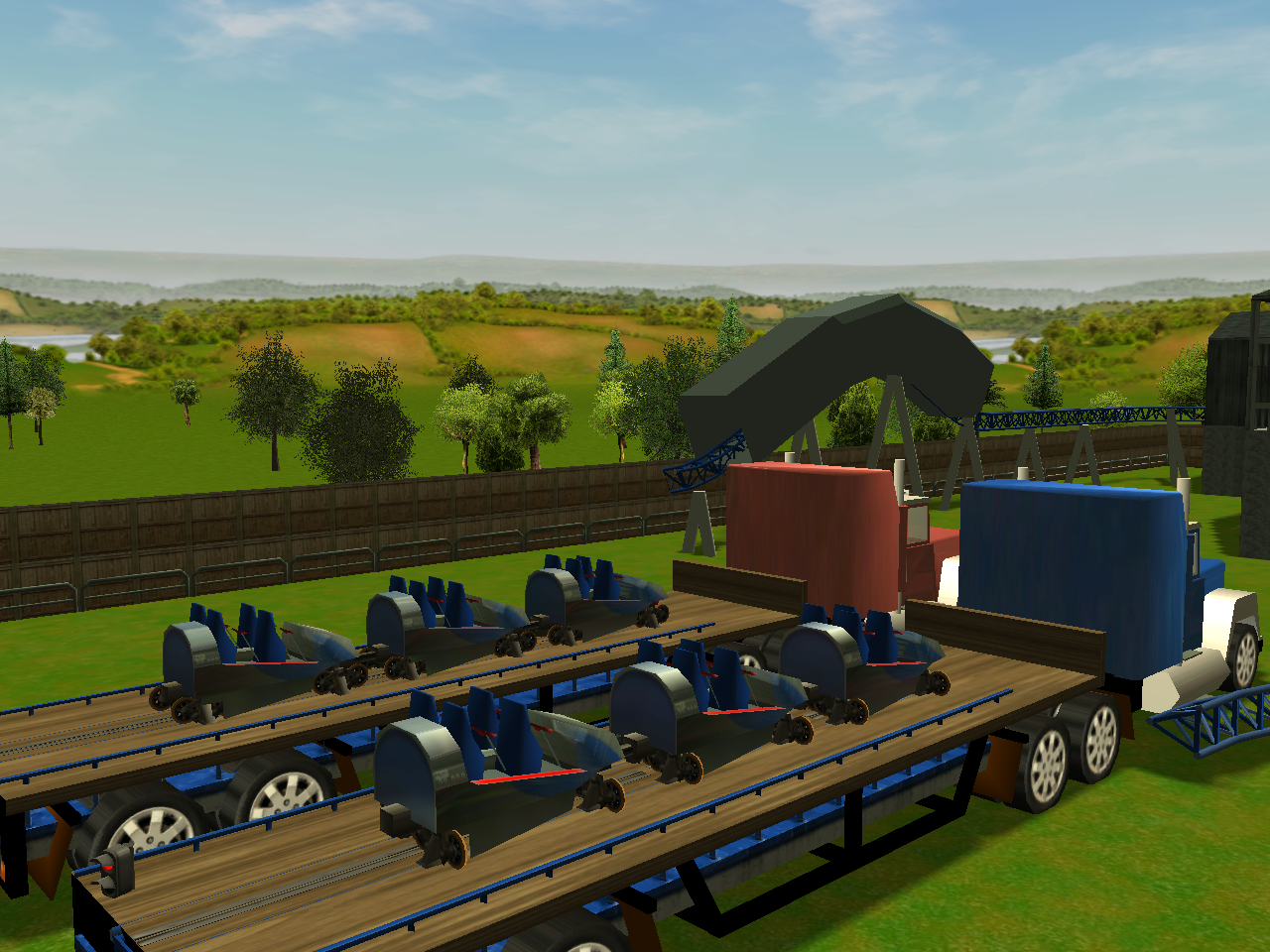 Deconstruction at Calico Lake has began. Here you can see a piece of their new "Total Chaos" roller coaster being hauled away to the Greenwich Scrapyard.
