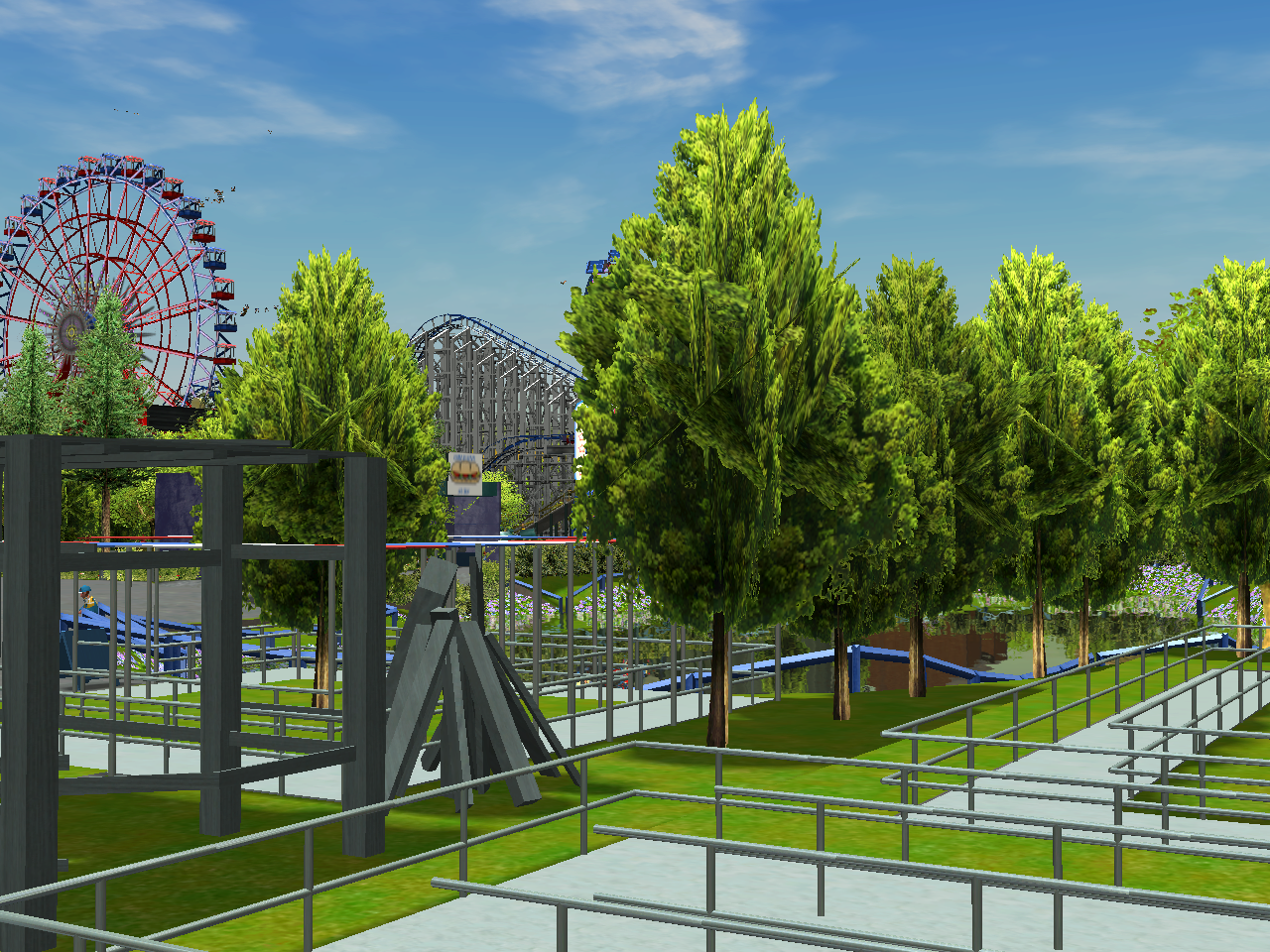 I'm afraid that Fright Fest is cancelled, unfortunately. I made multiple attempts over the past couple of days to work on it but my game file keeps crashing. I actually have 3 2000 files - One is my regular file that I've been having trouble opening, another is a new one I created 2 weeks ago that's a back-up for the first, and the last one is a Fright Fest file, which I have been unable to open for a couple of days. I've got a feeling the new for 2000 stuff might've had a bit of an impact on how my parks runs, as I've noticed it has been working a bit buggy since I installed everything for this year, and not to mention the game crashed multiple times when constructing the Picnic Pavilions area.