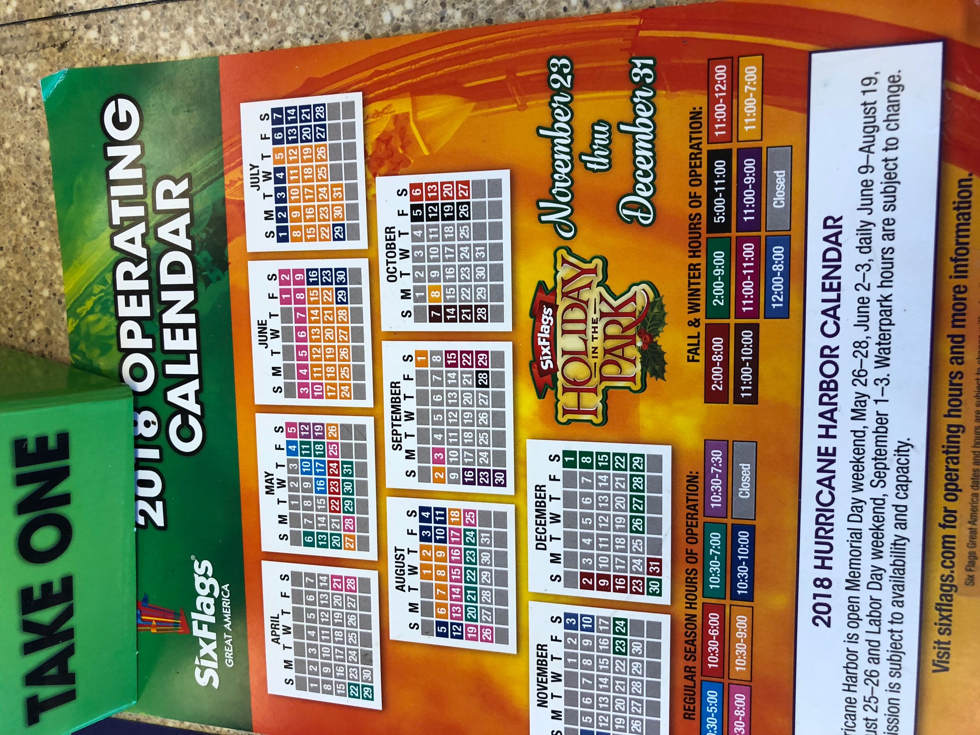 Here we go....Since the park doesn't want to update there website with there full operating schedule, you must go to your local Jewel to find out.