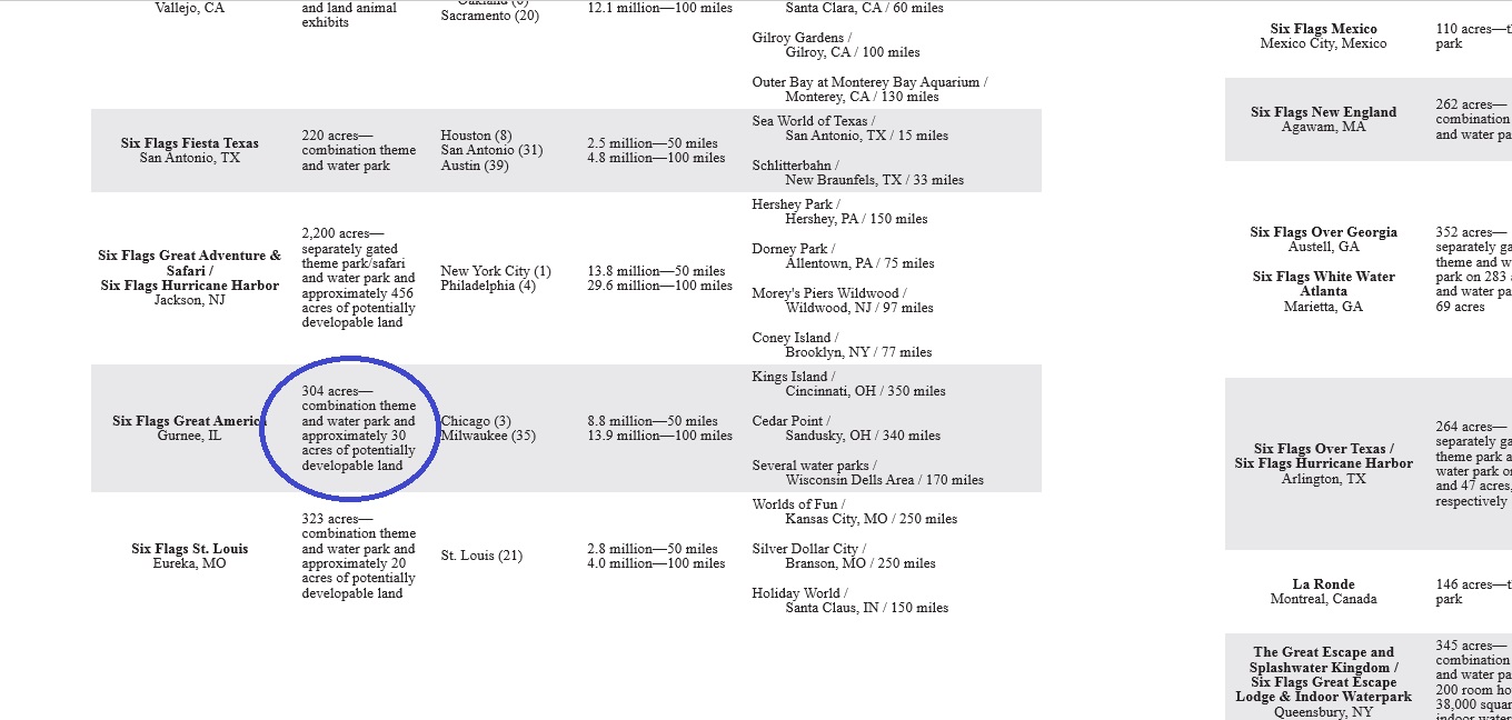 Great Adventure is massive! So they've got a lot of room left to work with! These numbers are from the official Six Flags 2016 annual repot, so they definitely see 30 acres of potential land at Great America!