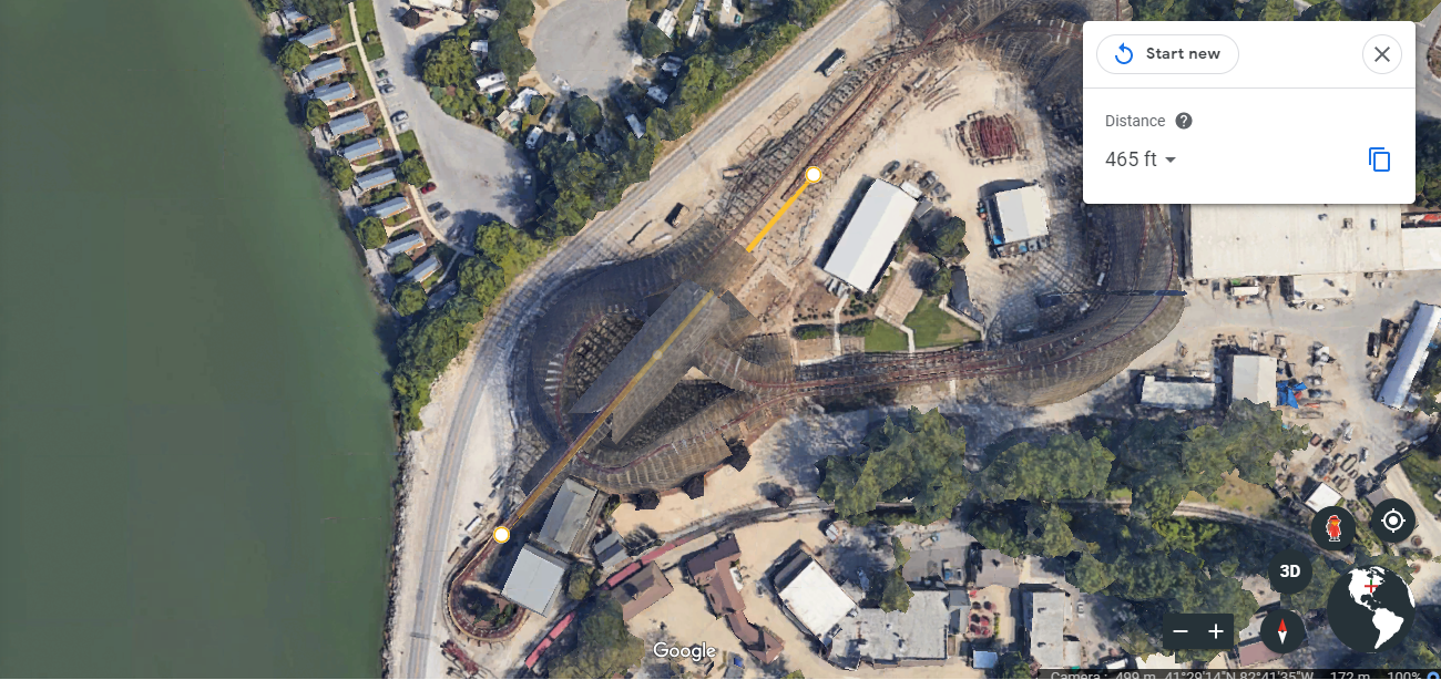 I think some people are forgetting the sheer potential in this roller coaster. Like, this could very possibly be one of the best coasters in the world, if not, the best coaster in the world. Let's take Steel Vengeance for example. AE has a 127ft height with a 147ft drop. Mean Streak had I believe a 161ft height, but a 155ft drop. Drop heights are very similar, along with a similar angled drop. I put it in google earth to see what the distance was from the start of the lift hill and the end of the first drop, and well...