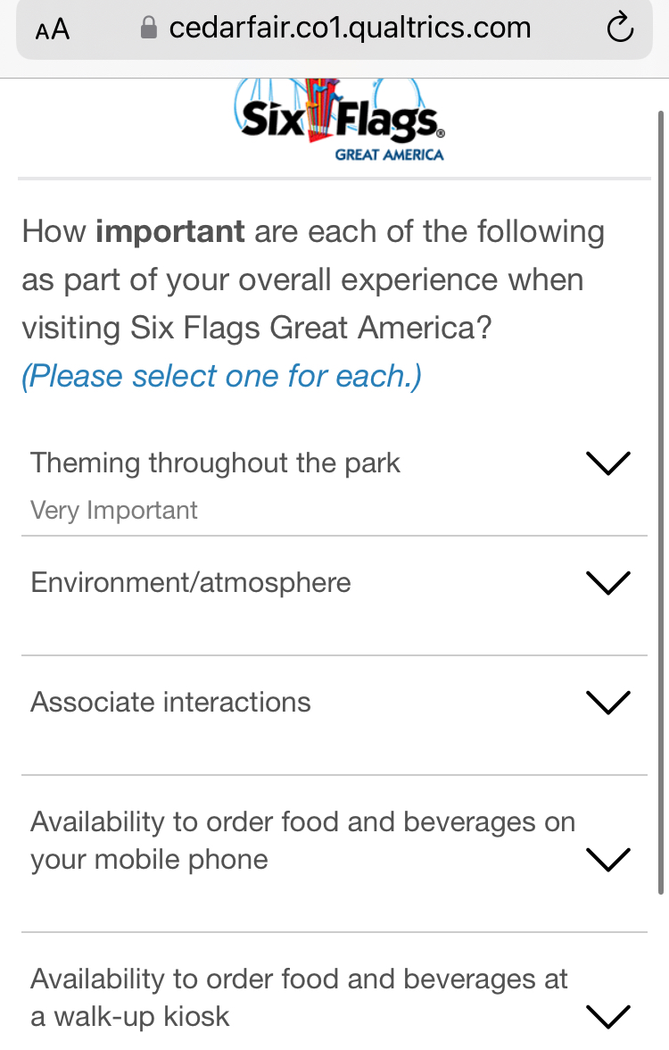 Survey didn't ask much. Just what factors into your reason for visiting and ranking importance of some category items.