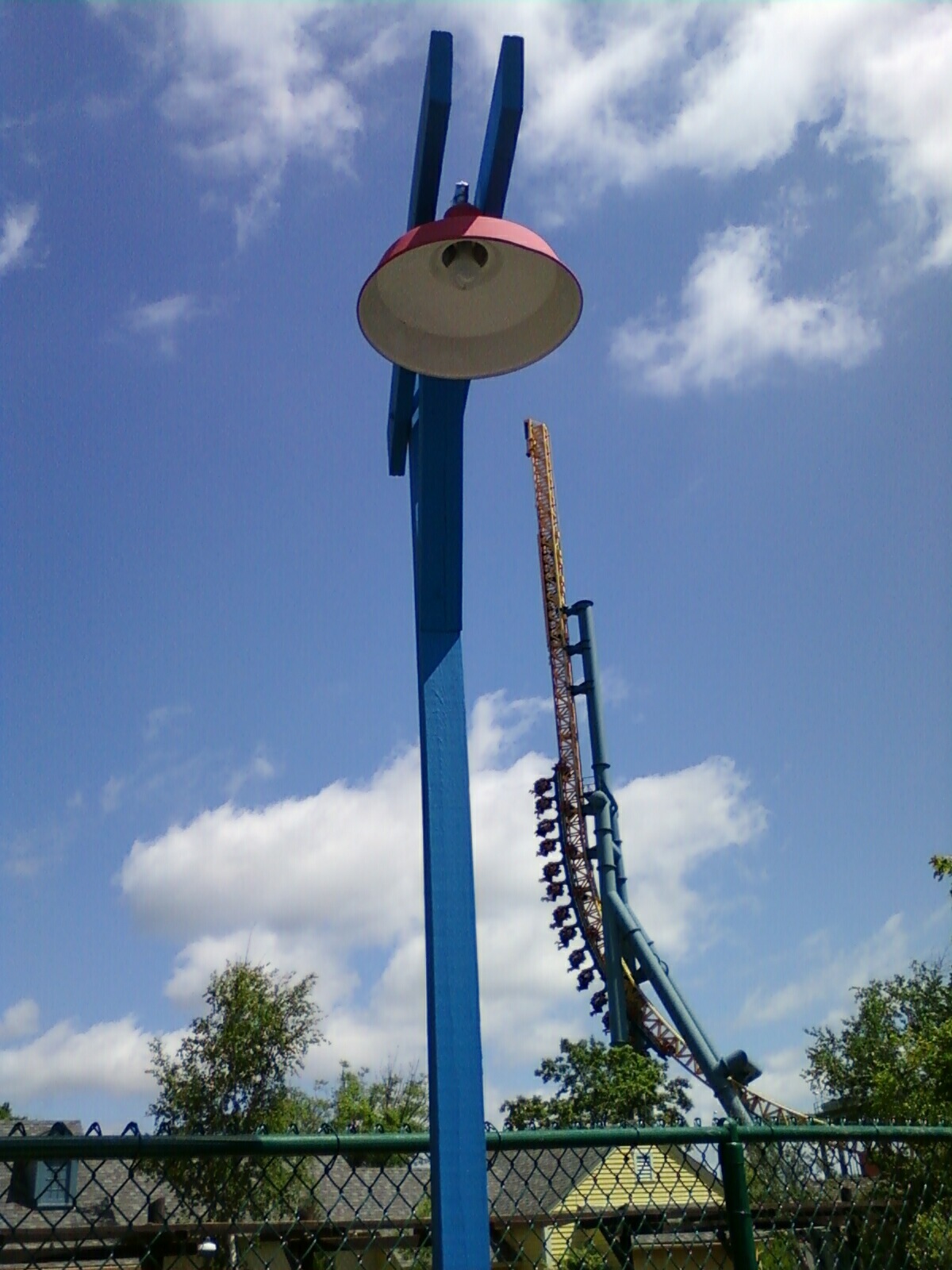 Aren't lamp posts at the park usually rounded though even though I know some tv's have rounded poles too like the older Demon and Iron Wolf poles, and I know one Superman pole for sure is like that? Are there any lights for the line though? I guess it's not anything that important - lamp post or tv though. Ha, ha begging people to ride BB.