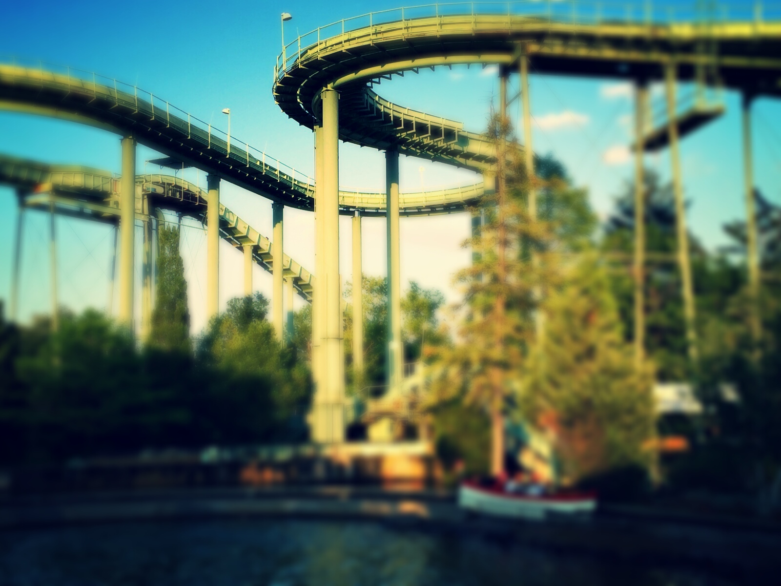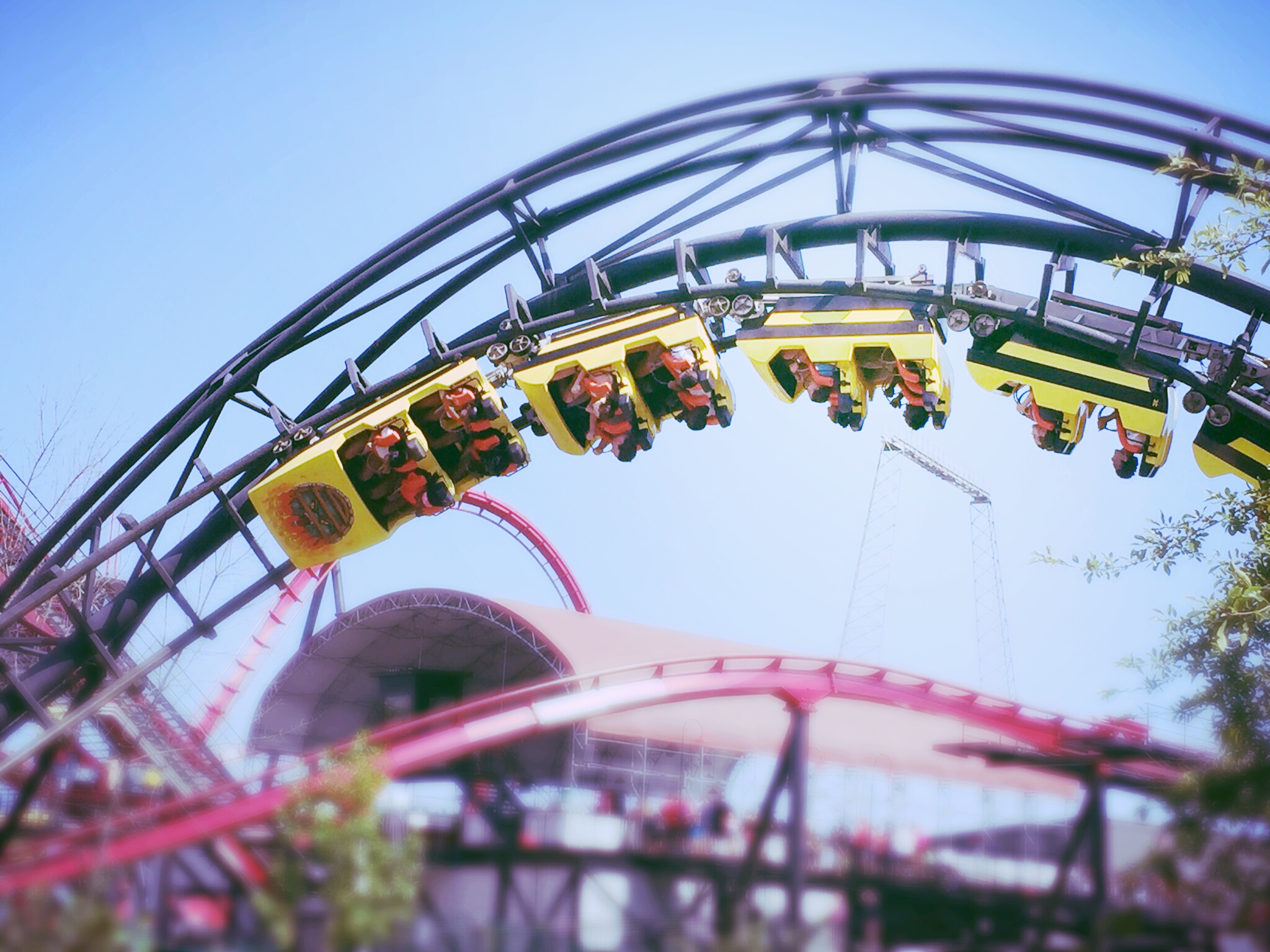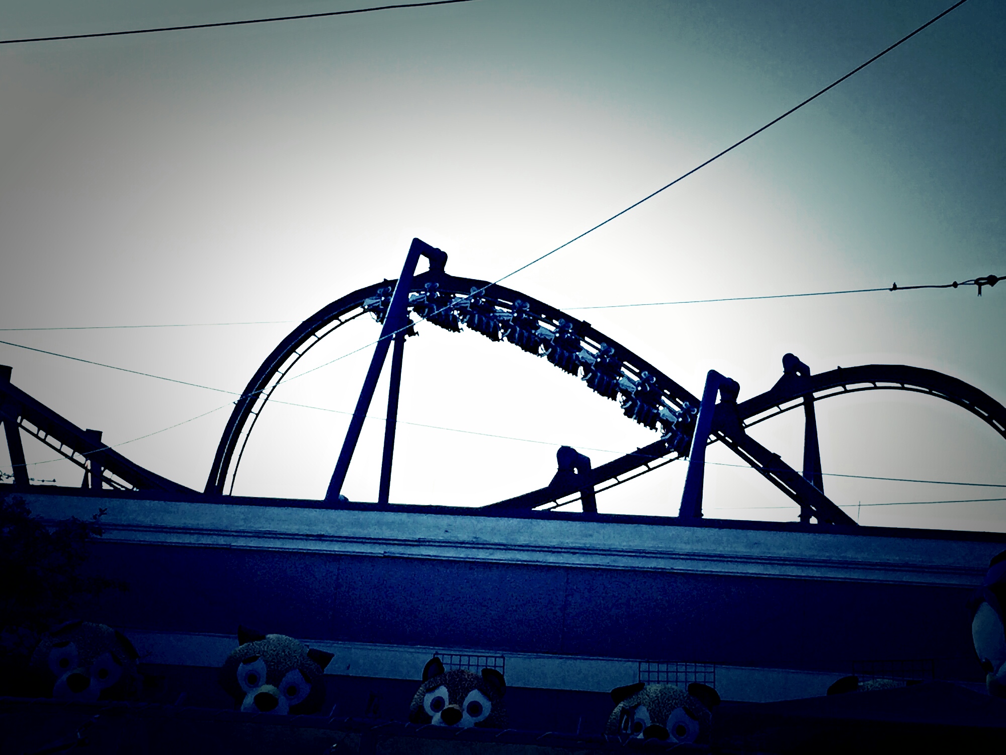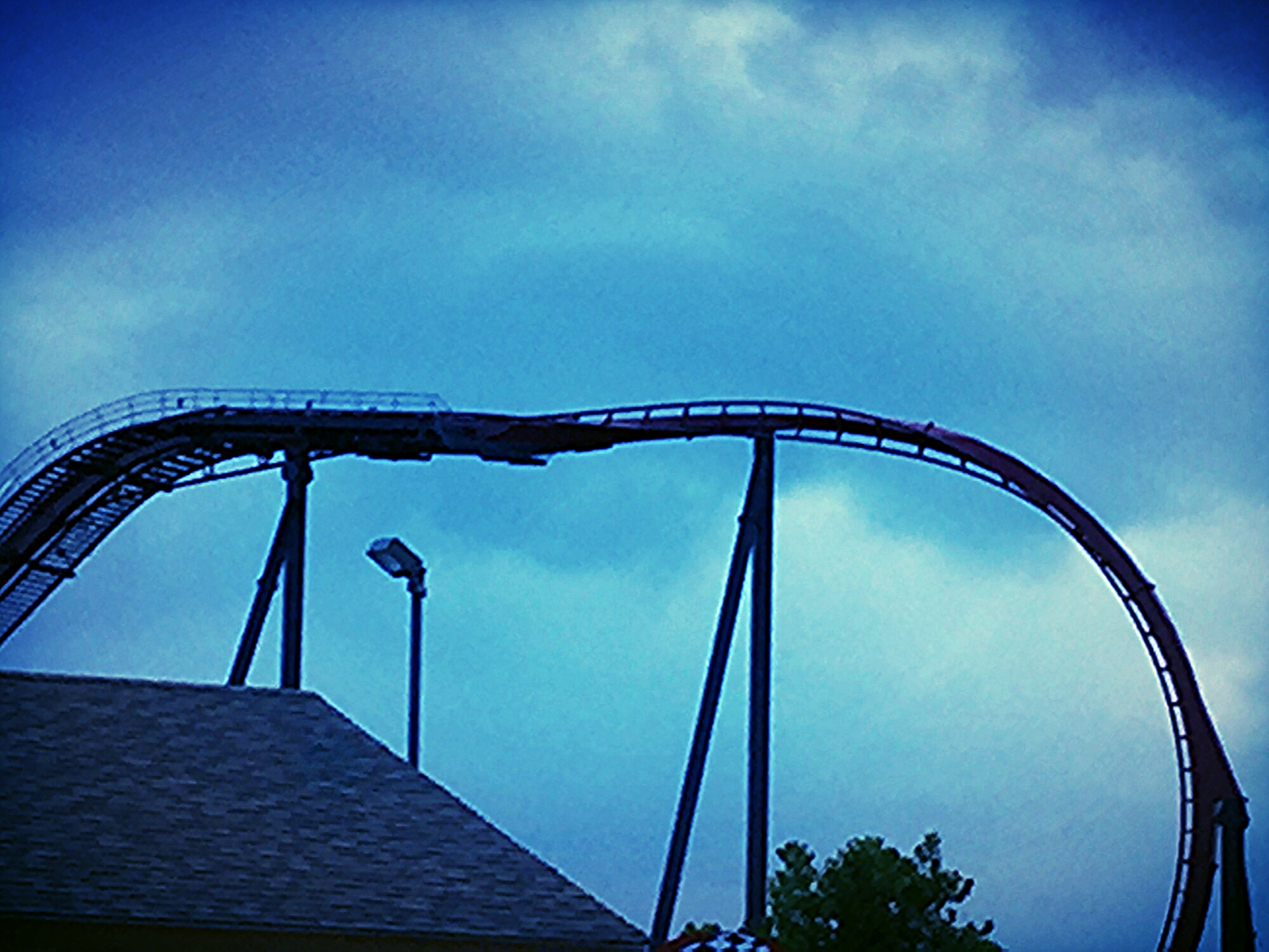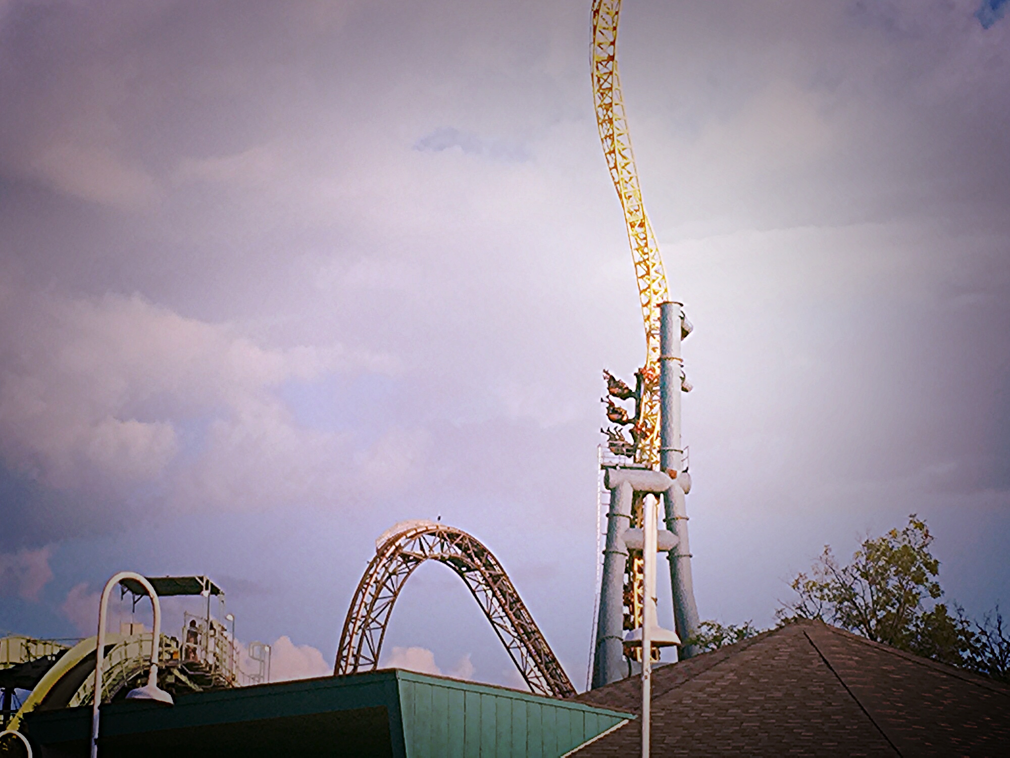 Guests prepare to enjoy a ride on Ricochet. Others, prefer a nice, head-pounding migraine on Demon. (Sorry, I had to