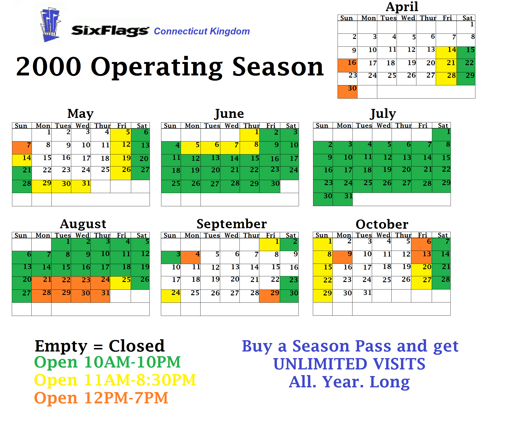 I'll be releasing a hint or two until the park begins it's 2001 season, feel free and try and guess what the new attraction is, though I will not confirm anything until I post the first update