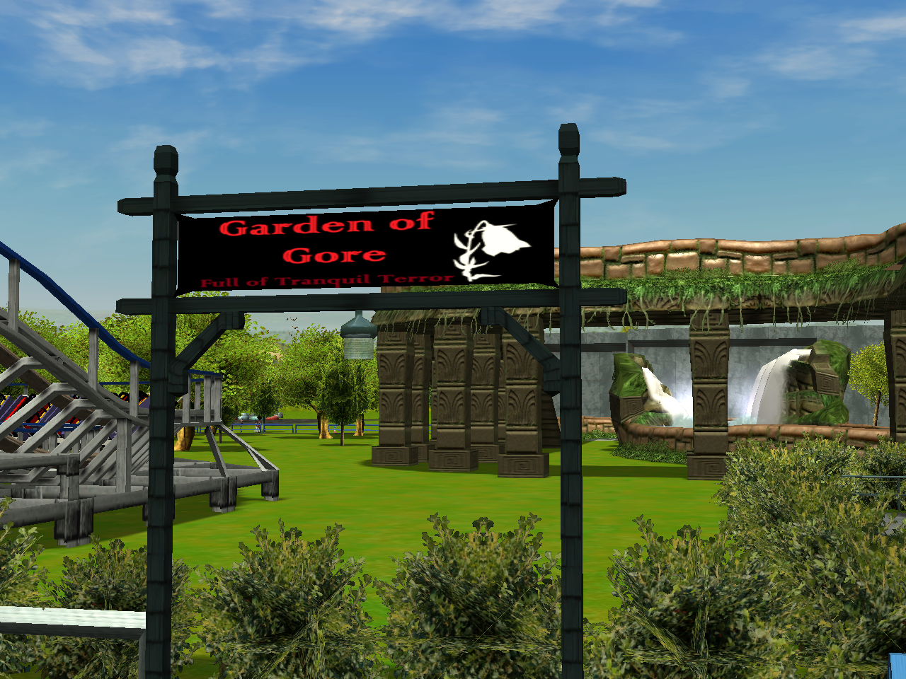 I'm afraid that Fright Fest is cancelled, unfortunately. I made multiple attempts over the past couple of days to work on it but my game file keeps crashing. I actually have 3 2000 files - One is my regular file that I've been having trouble opening, another is a new one I created 2 weeks ago that's a back-up for the first, and the last one is a Fright Fest file, which I have been unable to open for a couple of days. I've got a feeling the new for 2000 stuff might've had a bit of an impact on how my parks runs, as I've noticed it has been working a bit buggy since I installed everything for this year, and not to mention the game crashed multiple times when constructing the Picnic Pavilions area.