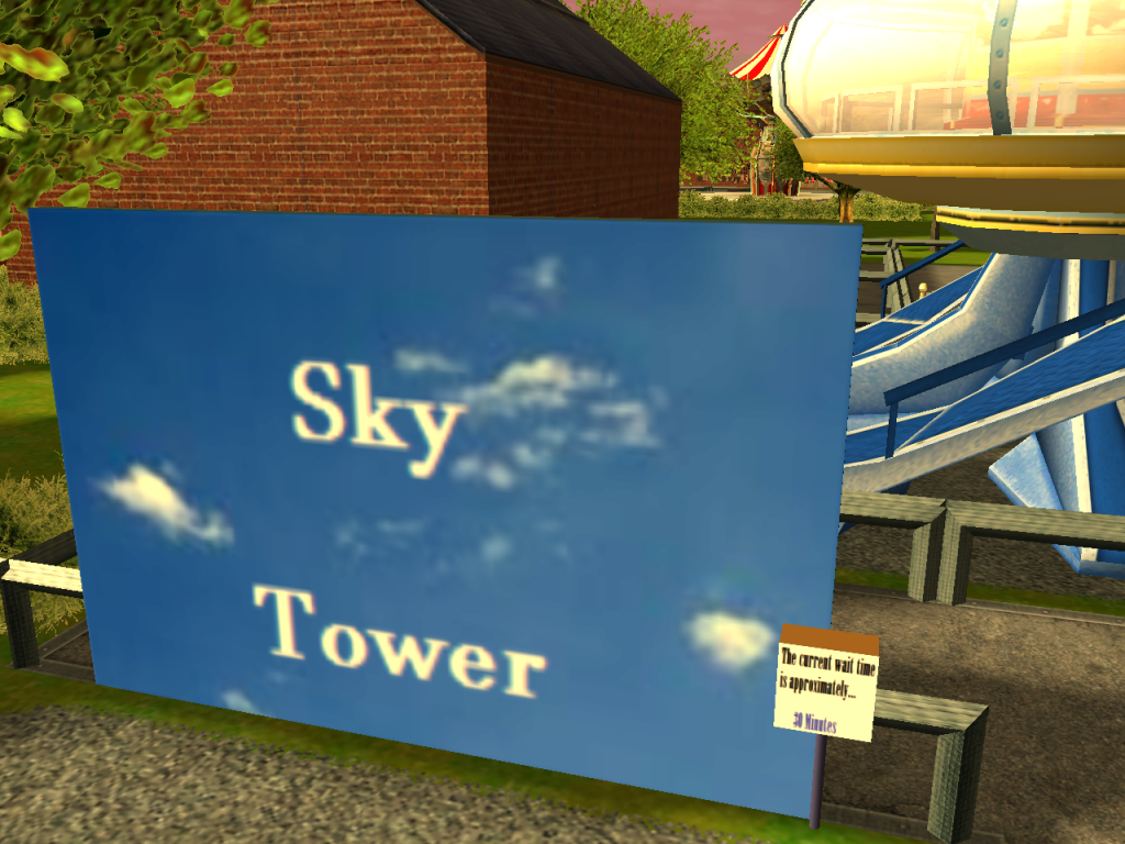 Sky Tower had a half-hour wait. Also, all of the park's major attractions got wait-time signs. Great touch!