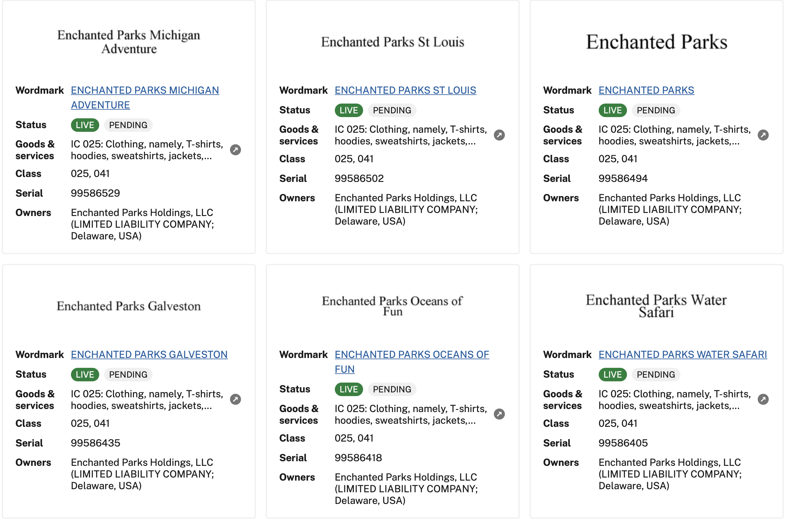 Looks like Six Flags filed for trademarks for parks to be part of a new LLC they incorporated on December 18th called "Enchanted Parks". Now I don't have some great knowledge of how the corporate world works, but this seems fishy. It's almost like they're prepping them for sale.