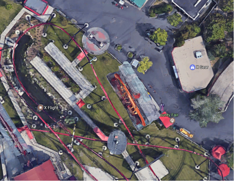 4th, I think you're under-estimating the size of this area by X-flight. Good luck fitting any ride there. As for kidzopolis, not the best place to expand. Right by some dumpsters will create quite the atmosphere. If they were to expand kidzopolis, it would be best to go outward by removing the useless cafe building and adding a wall between Jonny Rockets. This would require modifications to Eagle's queue though so it's expensive.