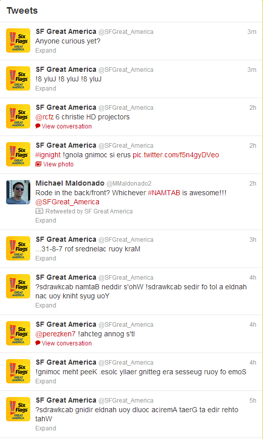 For those of you who do not follow the park's postings on twitter... I guess there'll be an announcement on July 8th! (The park is posting everything in backwards text. You have to start reading from the end to beginning, right to left)