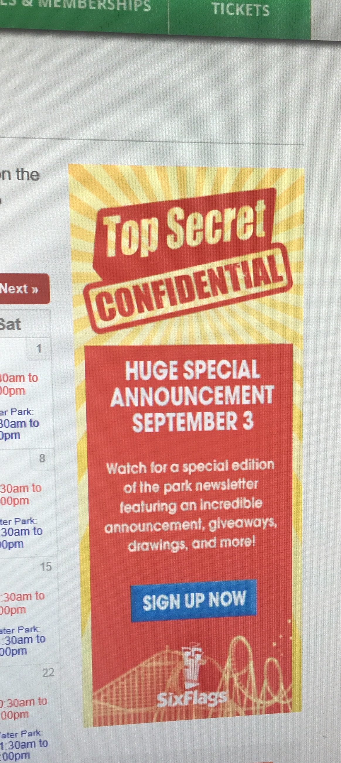 That's a genetic message that seems to be showing on a lot (possibly all) Six Flags sites, so don't read anything into it as hinting at what our new attraction will be.
