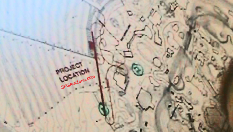 "Chang" was definitely at one small point in time planned for the front entrance of the park where Riptide Bay now resides. I know there was a more clear photo of it (or so I thought) but here is a photo taken by JonRev's video still I believe at the village meeting circa May of 2010(if I'm not mistaken) & then a photoshopped satellite overlay of what the proposed stand up would have looked like in that spot...