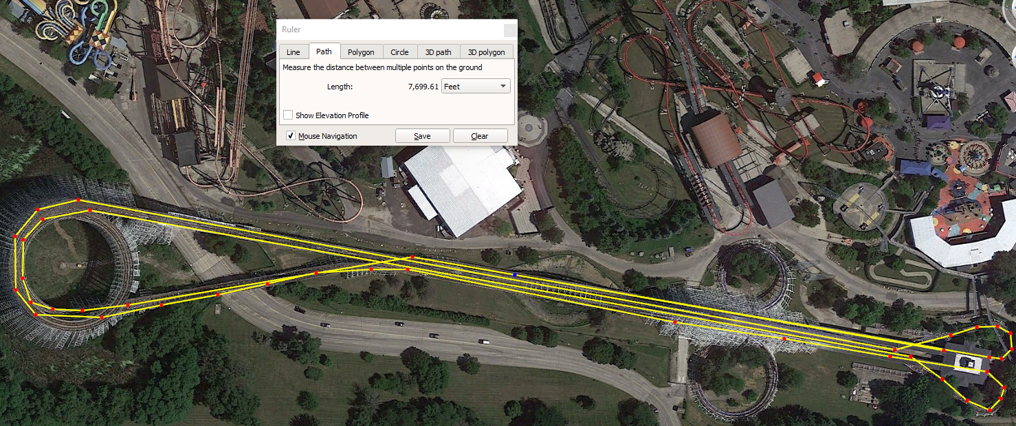 The big record could be track length. if this was a mobius loop, this could become the worlds longest roller coaster, which would be huge for a park like us! If we look at my bottom two attachments, this is the distance of both american eagle and steel dragon 2000 2d on google earth (credit to airboss for bringing this point up with me, and of course creating the pictures lol)