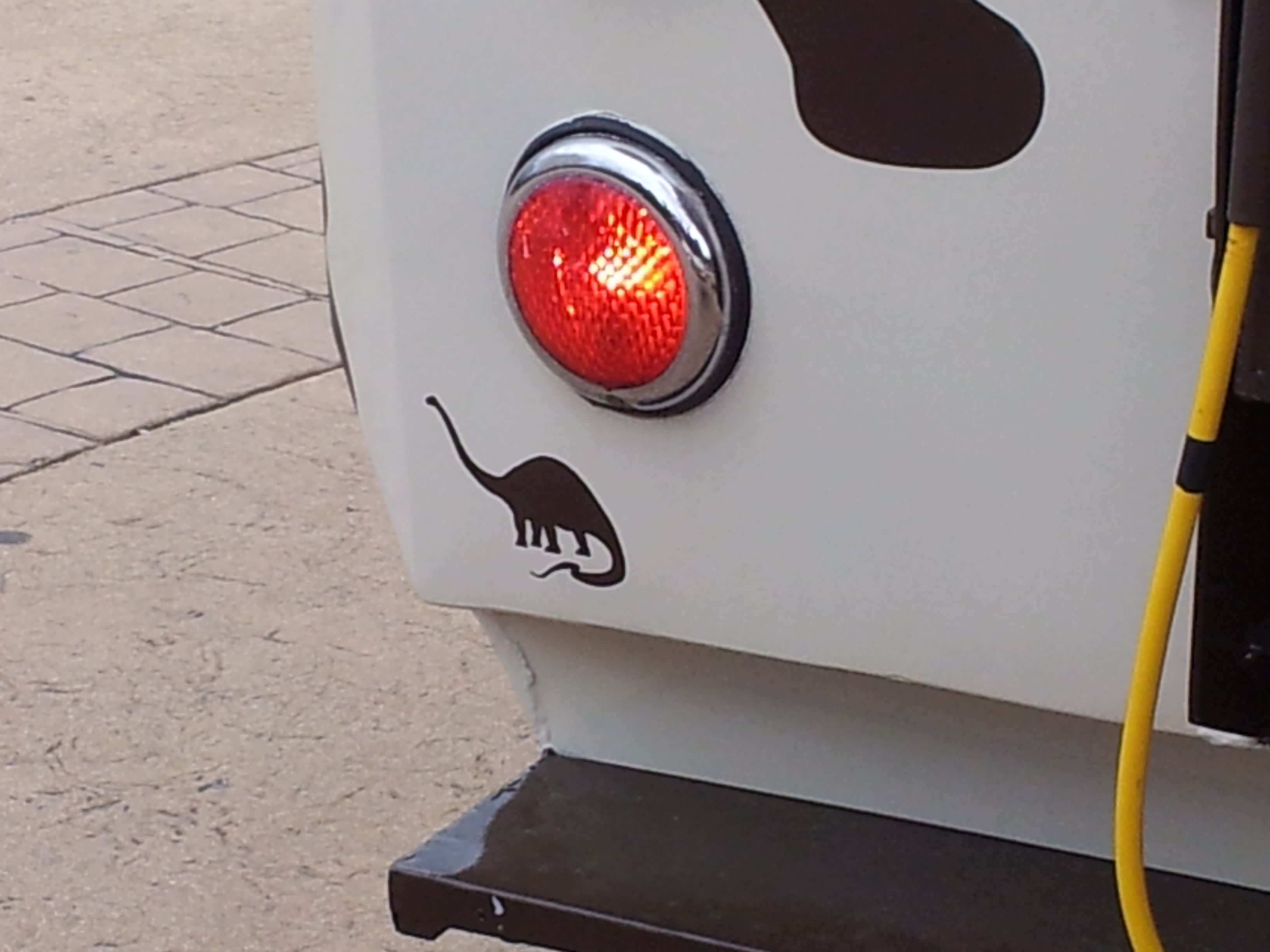 Maybe, the mechanics did it to be funny. The ride is so old, it's like a dinosaur. I never noticed that... Hmm. On V2, they have on the back bumper of it, See Ya...