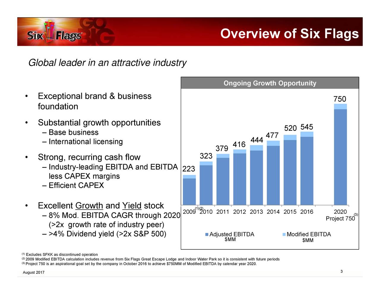 Six Flags is not focusing on organic growth. All their growth for several years domestically has been inorganic...ie..operating leases of water parks/theme parks. SF has been very defensive about it when questioned on it the last several conf calls b/c if you look at the attendance and EBIDTA excluding them adding the new lease parks, they are down a fair amount.