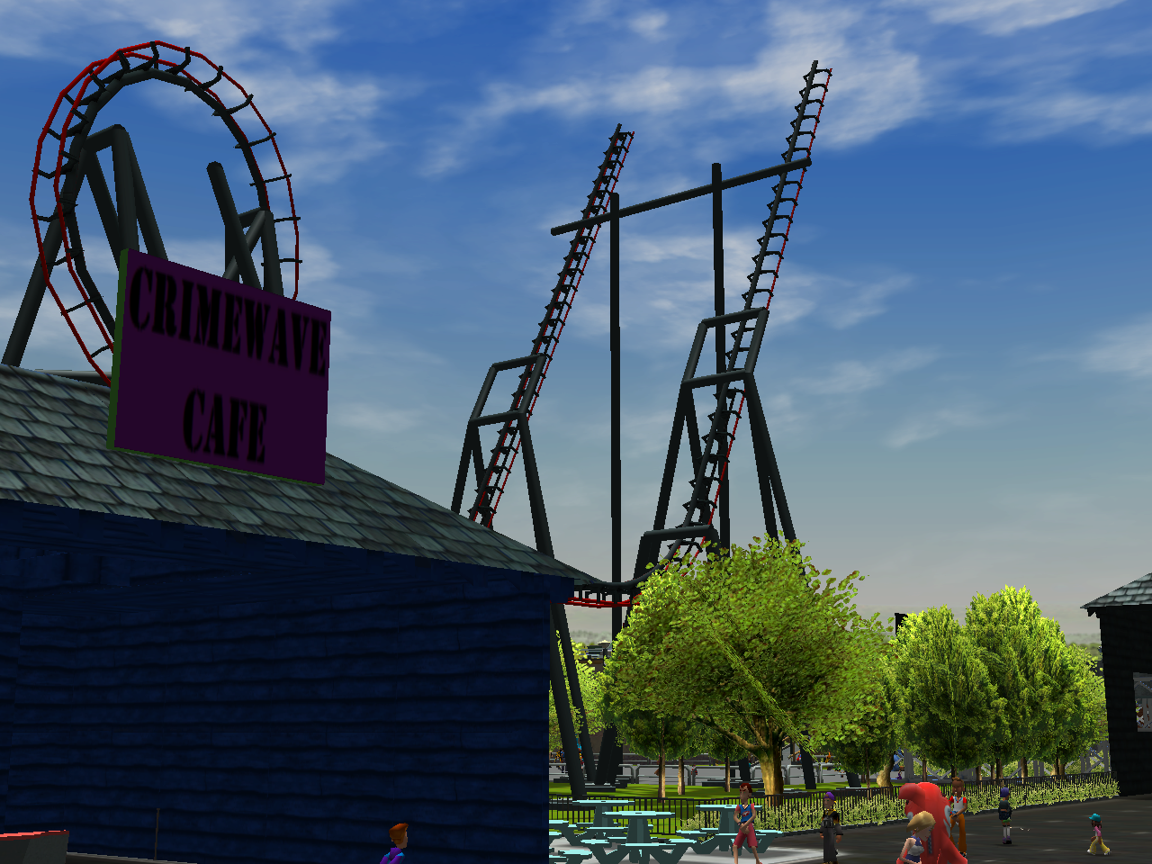 I'm afraid that Fright Fest is cancelled, unfortunately. I made multiple attempts over the past couple of days to work on it but my game file keeps crashing. I actually have 3 2000 files - One is my regular file that I've been having trouble opening, another is a new one I created 2 weeks ago that's a back-up for the first, and the last one is a Fright Fest file, which I have been unable to open for a couple of days. I've got a feeling the new for 2000 stuff might've had a bit of an impact on how my parks runs, as I've noticed it has been working a bit buggy since I installed everything for this year, and not to mention the game crashed multiple times when constructing the Picnic Pavilions area.