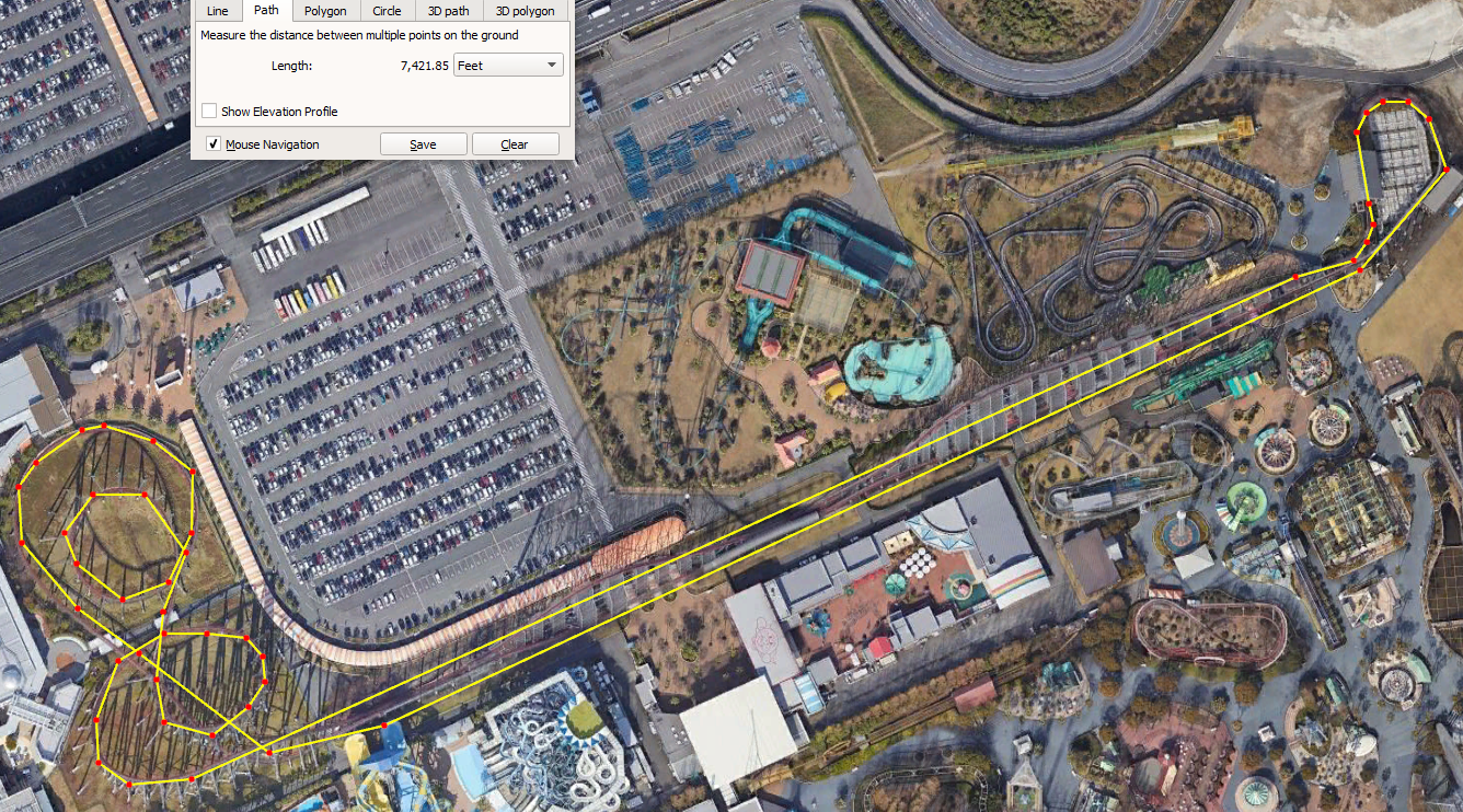 The big record could be track length. if this was a mobius loop, this could become the worlds longest roller coaster, which would be huge for a park like us! If we look at my bottom two attachments, this is the distance of both american eagle and steel dragon 2000 2d on google earth (credit to airboss for bringing this point up with me, and of course creating the pictures lol)